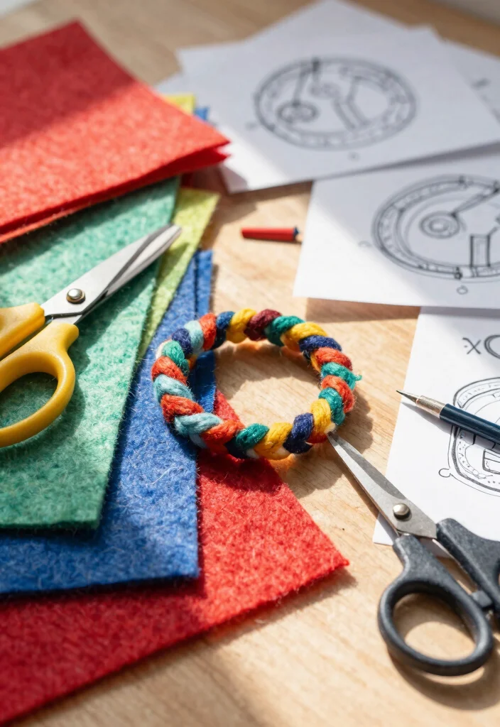 Felt is a wonderful material for creating a cozy braided bracelet. This project is ideal for those who enjoy working with soft materials, offering endless possibilities for color and design customization.