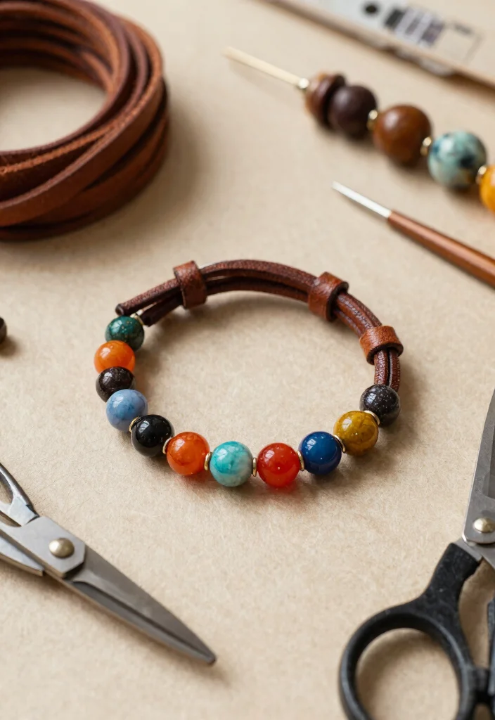 Combine the ruggedness of leather cord with the beauty of beads to create a stunning beaded leather cord bracelet. This project strikes a perfect balance between edgy and elegant, ideal for those who love unique accessories.
