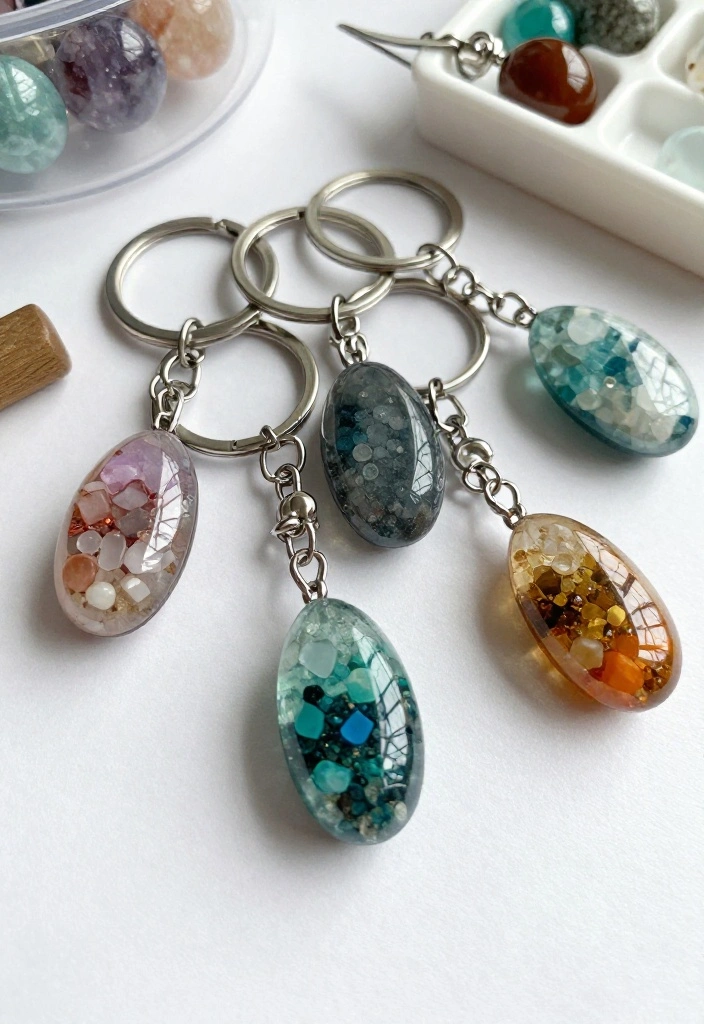 Elevate your accessory game with sparkly gemstone charm keyrings! By combining resin with colorful gemstone chips, you can create dazzling designs that catch the light beautifully. This combination works wonders because it blends natural beauty with artistic flair, making for a stunning visual treat. Perfect for parties or casual outings, these keyrings are also great conversation starters.