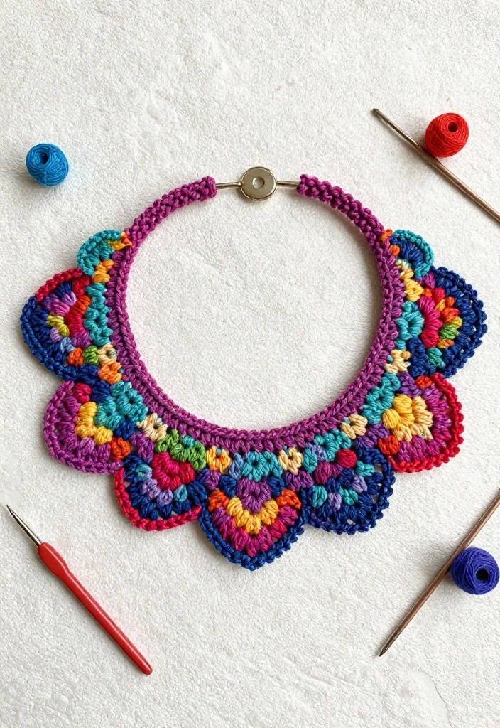This choker adds a sweet and personal touch to your outfits. Choose colorful threads to match your looks and showcase your crochet skills!