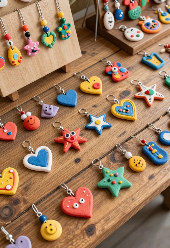 Funky clay keychains make wonderful gifts and can also serve as bag charms, adding a unique touch to your accessories.