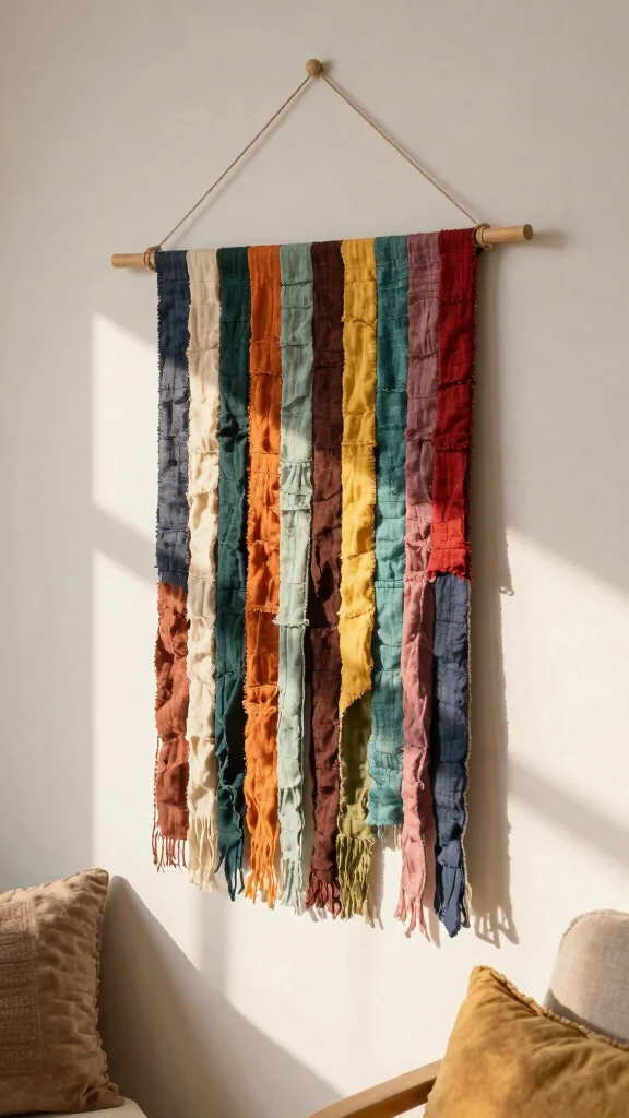 Add texture and warmth to your walls with DIY fabric wall hangings. This project allows you to showcase fabric scraps artistically, turning them into stunning decorative pieces that brighten any space. By choosing a variety of fabrics in different textures and colors, you can create a unique statement that enhances your home decor.