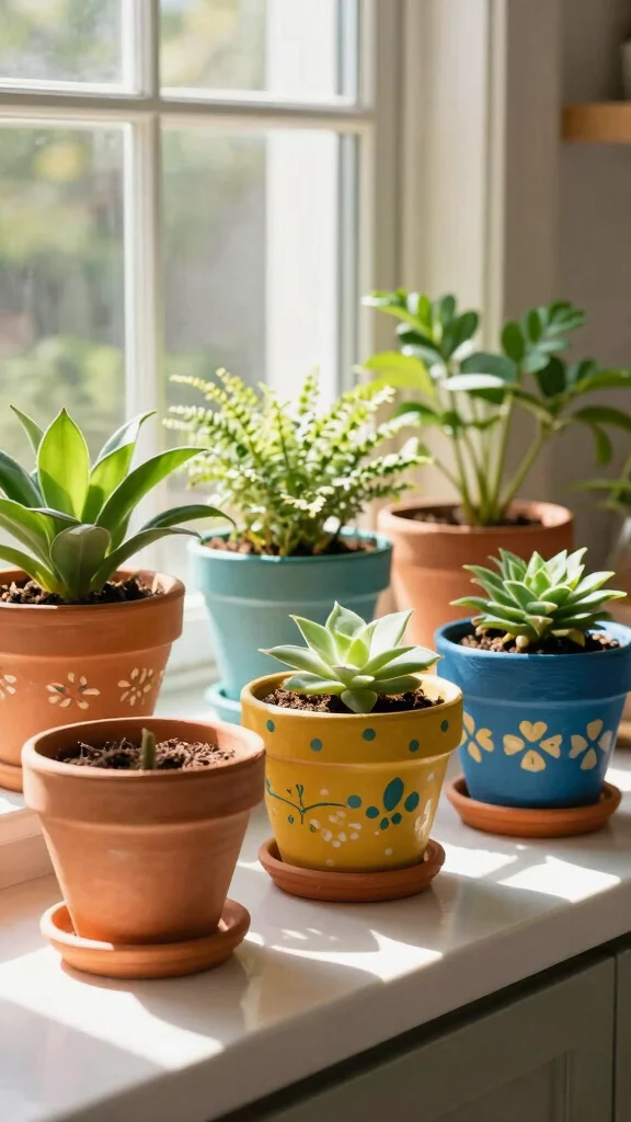 Select bright colors for a cheerful vibe or muted tones for a sophisticated look. Once painted, fill these pots with herbs, flowers, or succulents to infuse life into your decor. This not only beautifies your space but also adds a touch of nature indoors.