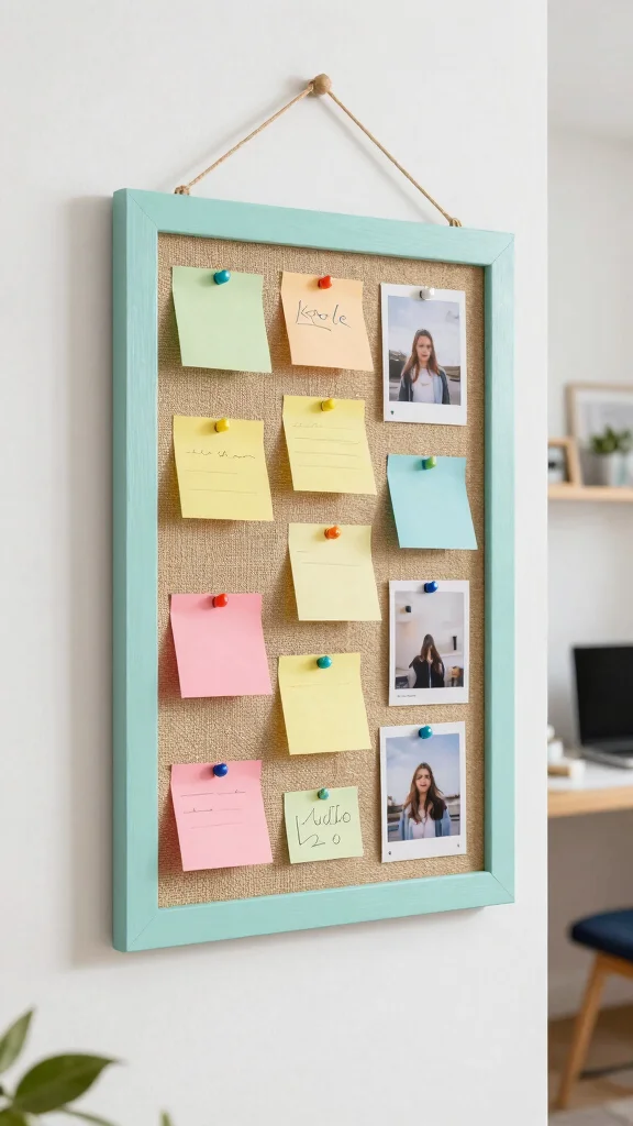 Upcycle an old frame into a memo board for organization and a stylish touch to your workspace.
