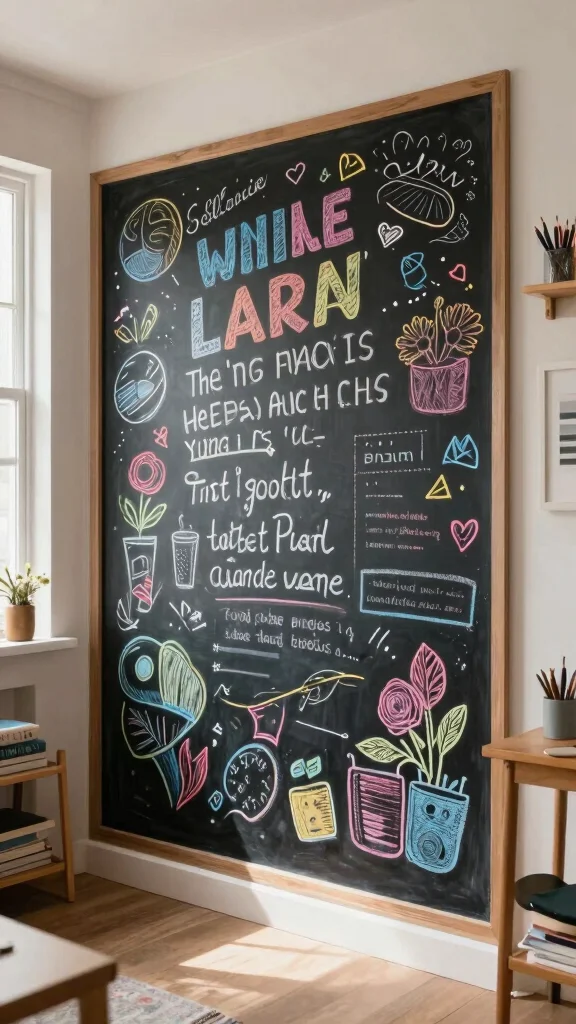 This chalkboard wall art keeps your creativity flowing while serving as an adorable decor element. Using colored chalk adds an extra layer of fun, allowing you to change messages and artwork with ease.