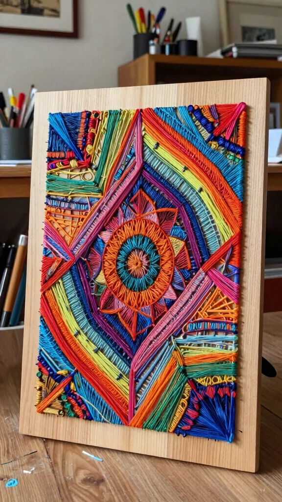 Fun fact: In under 60 minutes, a wooden board, nails, and 3 colors of string can become a bold centerpiece. Perfect for diy crafts room decor, this quick project proves you don’t need a studio to create wall art you’ll love.
