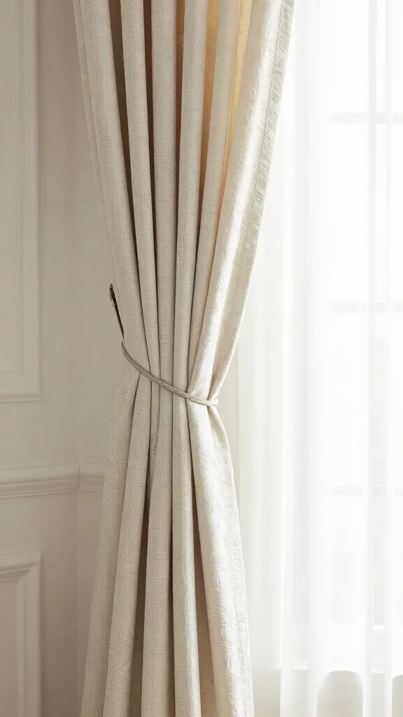 Match your tiebacks to your room’s vibe: boho loves macramé and natural fibers; industrial pairs with metal chains or leather straps; coastal works with rope and light colors; traditional rooms can use tassels or braided cords.