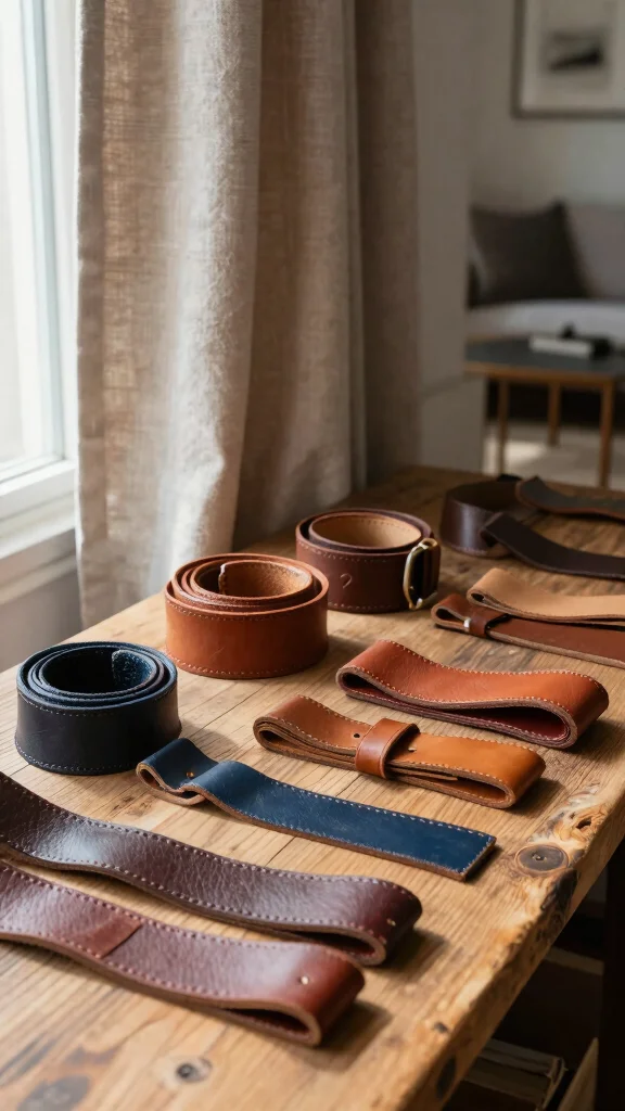 To execute this idea, find old leather belts at thrift stores or from your own collection. You can also consider budget-friendly alternatives by sourcing leather scraps from local craft stores. This trend reflects the growing interest in eco-conscious home decor.