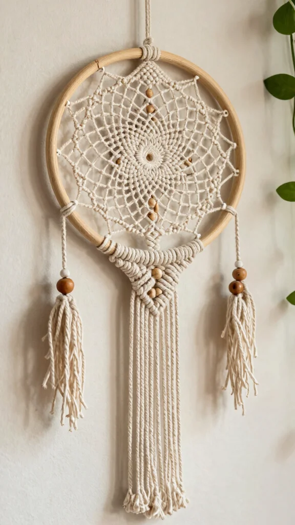 Dive into macramé techniques for a textured and sophisticated dream catcher that enhances your boho decor.