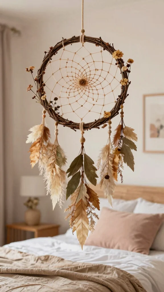 Celebrate the changing seasons with a dream catcher that evolves throughout the year. This innovative idea allows you to refresh your decor according to the seasons, ensuring your bedroom remains inviting and lively. By incorporating seasonal elements, you can keep your space connected to the natural world.