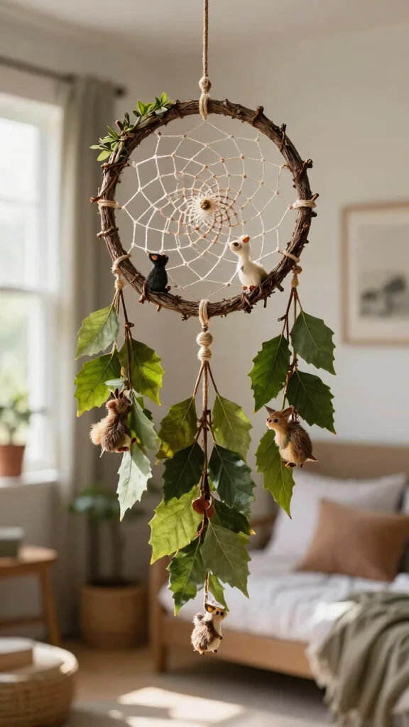 Turn your bedroom into a tiny forest with a woodland dream catcher. Start by gathering leaves and twigs, then weave in tiny woodland charms. This diy dream catcher decor is cozy, personal, and easy to refresh—perfect for grounding everyday chaos.