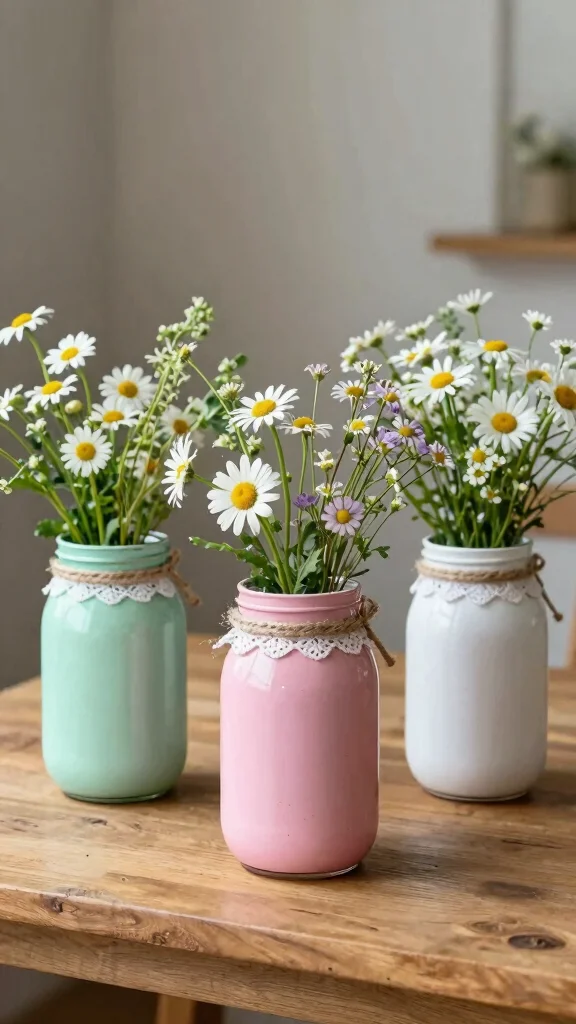 – Paint jars in soft pastels for a charming look.