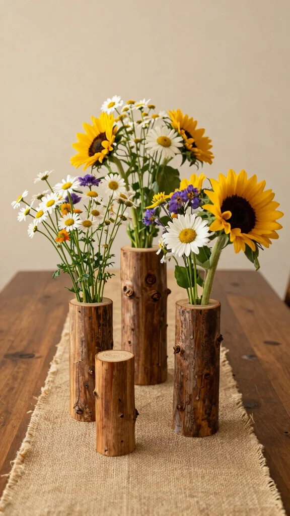 The size and shape of wood logs can vary, allowing you to create a mini forest of vases on your table for added impact. This approach brings an organic touch to your decor, perfect for cozy settings.