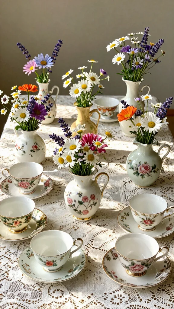 To create a coordinated look, consider the color palette of your cups. Mixing patterns can add a whimsical touch, while matching saucers can elevate the elegance of your arrangement.