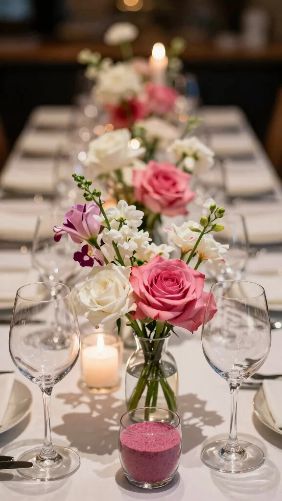 Adding colored sand or pebbles inside the glasses can create visual depth, while pairing them with flickering candles can set a romantic mood. This simple yet effective decor option can elevate your dining experience.