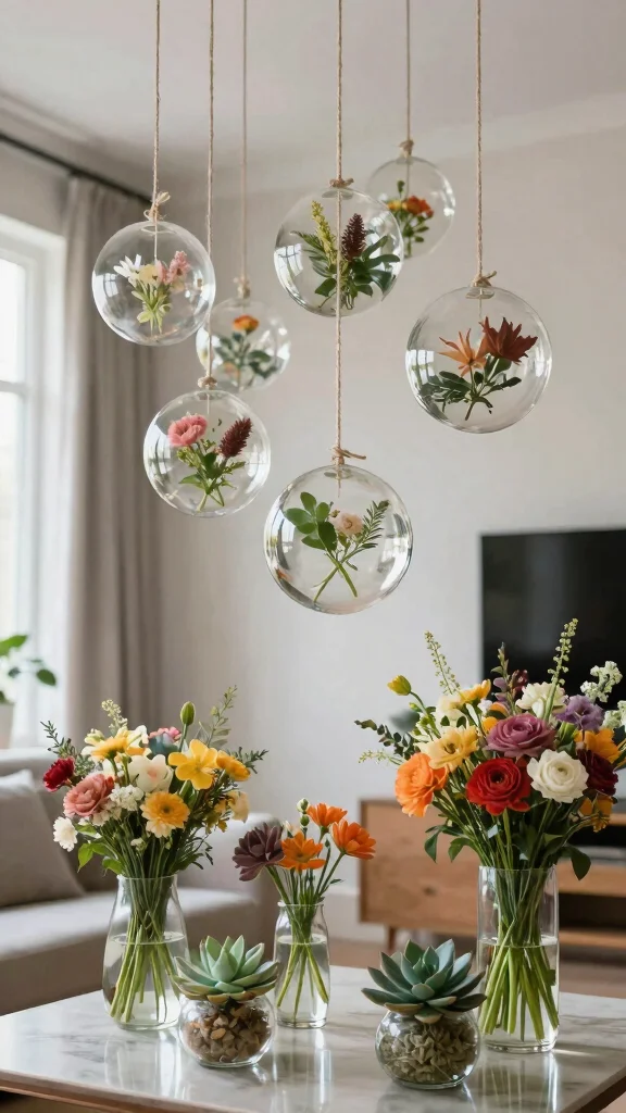 Glass globes create an enchanting effect when used as vases, allowing flowers to shine while adding a modern flair to your decor. Their unique shape and transparency make them a versatile choice for both hanging displays and table centerpieces.