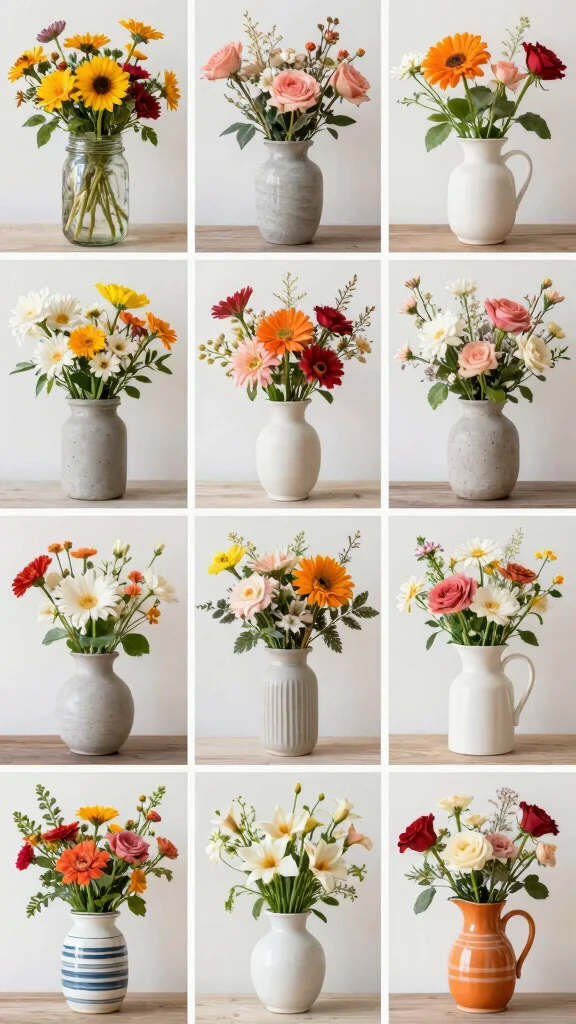 Tip: keep a cohesive color palette across different vase shapes to enhance creative floral arrangements.