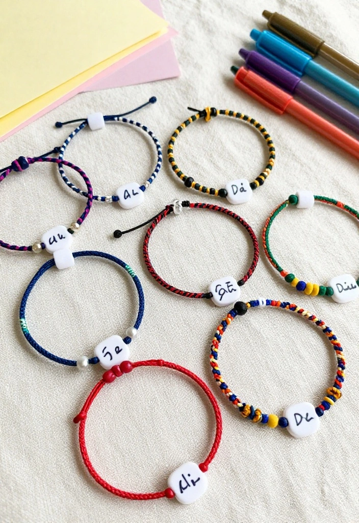 Create small paper tags that can be tied onto the bracelet, or write directly on fabric strips before braiding. This simple addition makes your bracelets not only stylish but also meaningful.