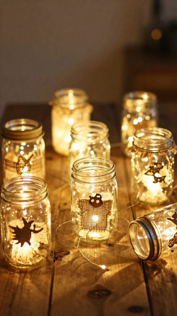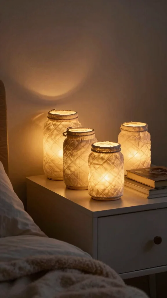 Warm-white LED lights inside jars create instant coziness. Start with mason jars or small glass jars and use LED tea lights or battery-operated string lights for a safe, low-heat glow.