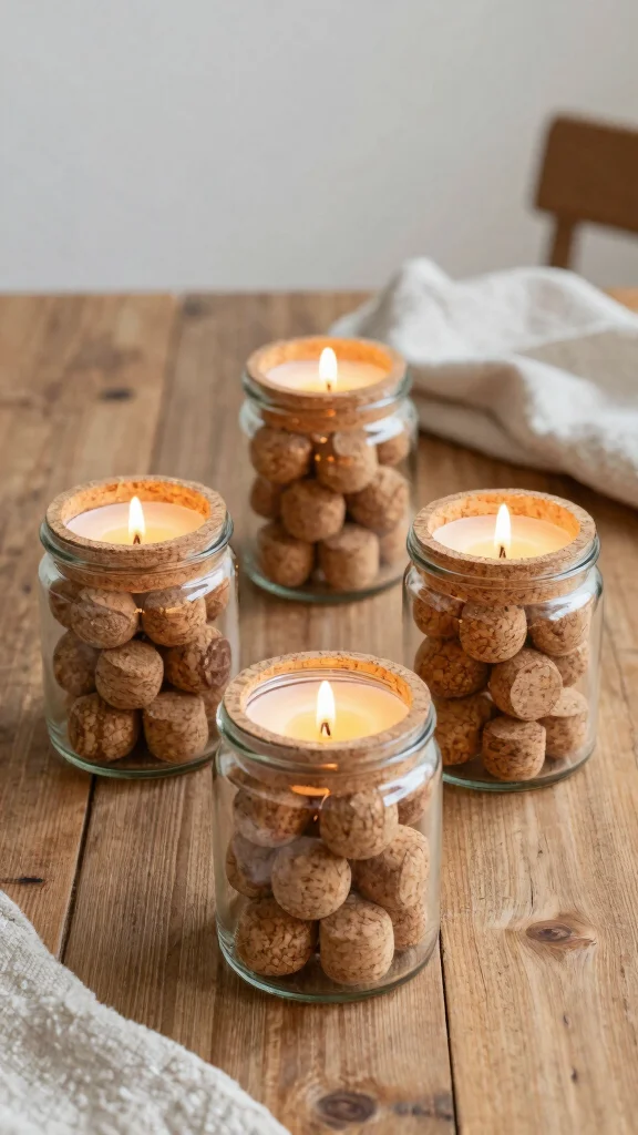 Combine functionality with nostalgia by creating charming candle holders from corks and jars. This DIY project is perfect for repurposing wine corks while providing warmth and ambiance. By filling jars with corks and placing a candle on top, you can create unique holders that add character to any room.