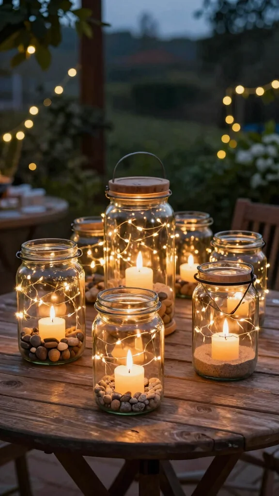 – Choose frosted or colored jars for unique lighting.