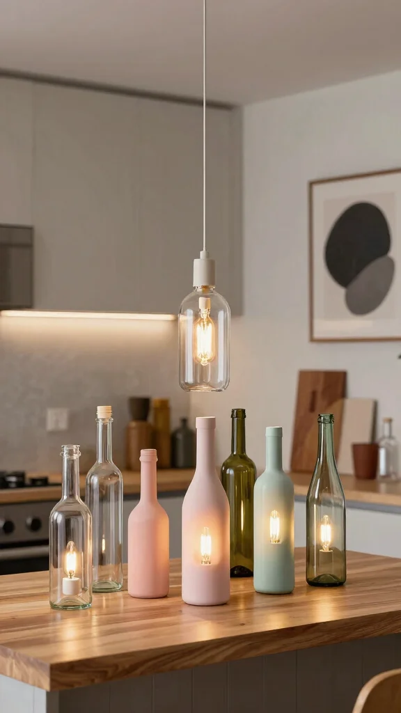 For a successful outcome, experiment with different bottle shapes to create visual variety. Consider using colored bulbs for a fun twist, and don’t hesitate to hang the bottles from the ceiling for an edgy chandelier effect.