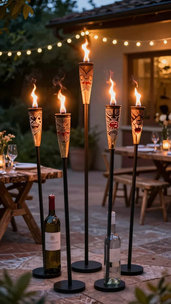 8. Wine Bottle Tiki Torches