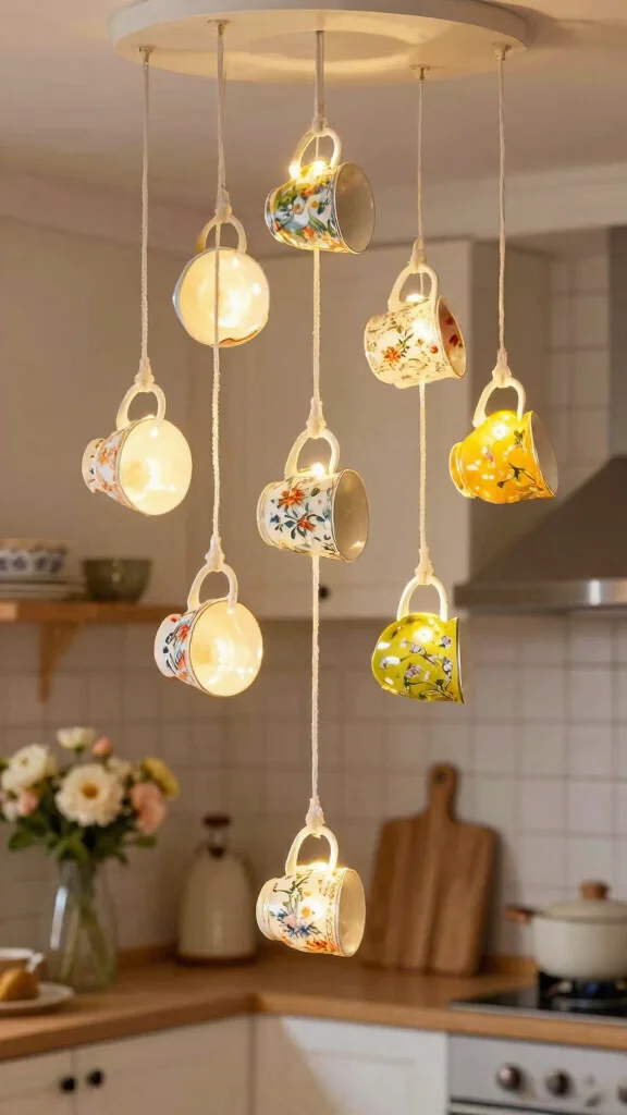 For a whimsical touch, consider crafting upcycled teacup lights that bring charm and joy to any setting! This adorable project allows you to repurpose old teacups into unique light fixtures. Simply attach the cup to a ceiling or wall light fixture for a playful décor element that looks stunning. Multiple cups can create a delightful chandelier effect, perfect for enhancing any space.