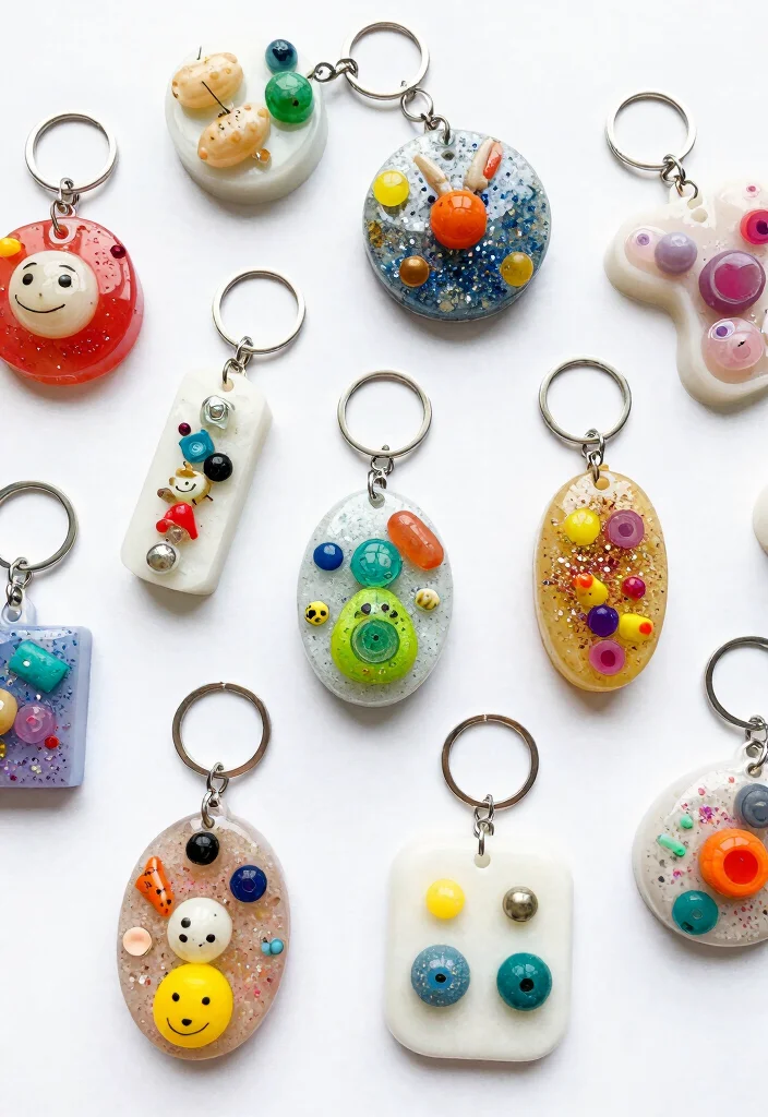 Did you know epoxy resin cures crystal-clear in 24 hours and makes glitter sparkle like tiny stars? Layer thin pours for depth, add small charms, and seal with a final clear coat—perfect for diy keychains crafts.