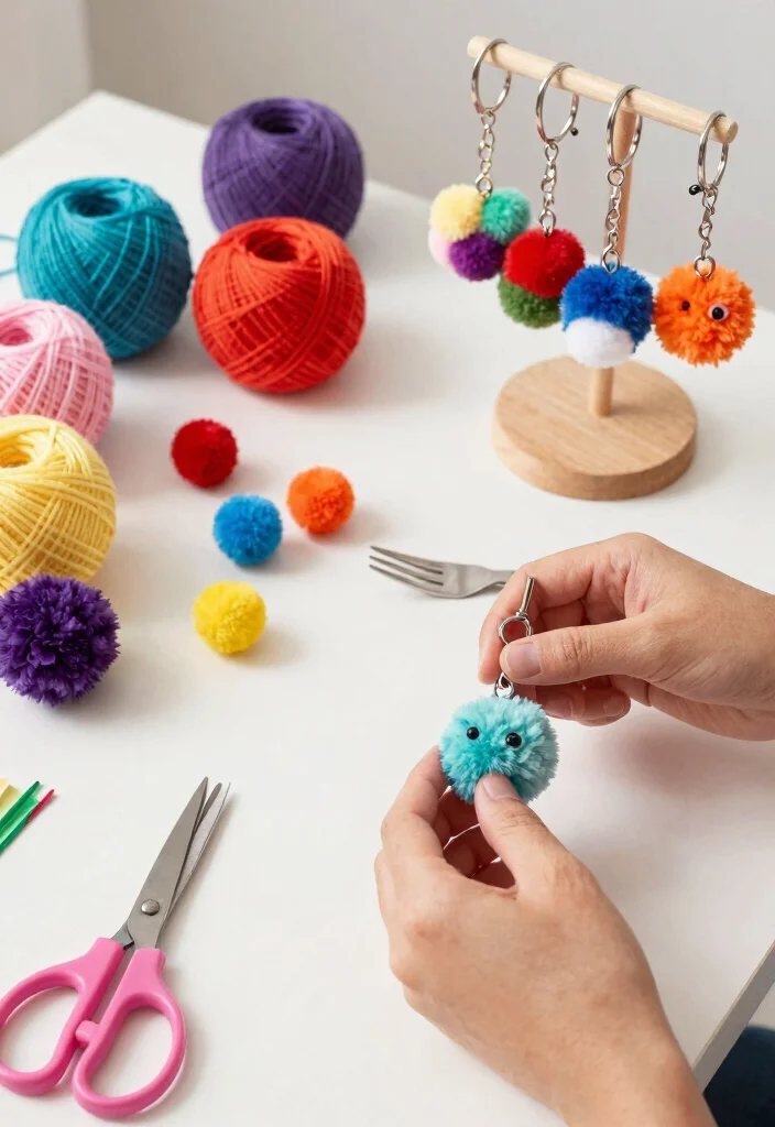 Pom-pom keychains are all about fun and creativity. Using colorful yarn scraps, you can make fluffy pom-poms that add a playful touch to your keys. Their vibrant colors are sure to bring joy wherever you go.