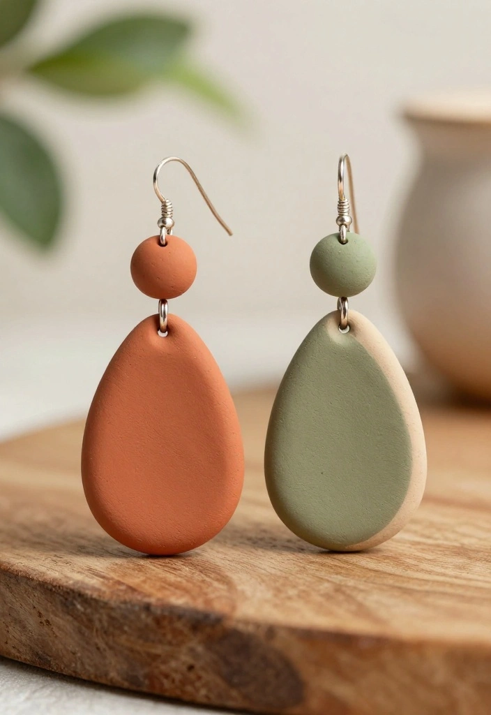 Start with simple shapes like circles, teardrops, or geometric ovals that resonate with bohemian vibes. Keep color palettes earthy — terracotta, teal, olive, cream — and try subtle textures with a toothpick or a stamp. Try marbling or layered canes for visual interest without complicating your craft workflow. Bake tips and finish with a matte or glassy seal to enhance the clay earring designs without heavy machining. These easy clay earring designs let you build confidence while staying true to boho aesthetics.