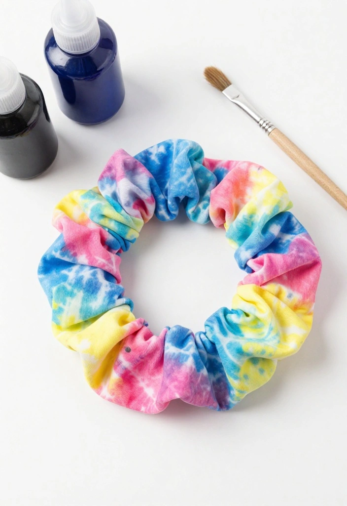Create unique, vibrant scrunchies using tie-dye techniques for a fun, personalized accessory.