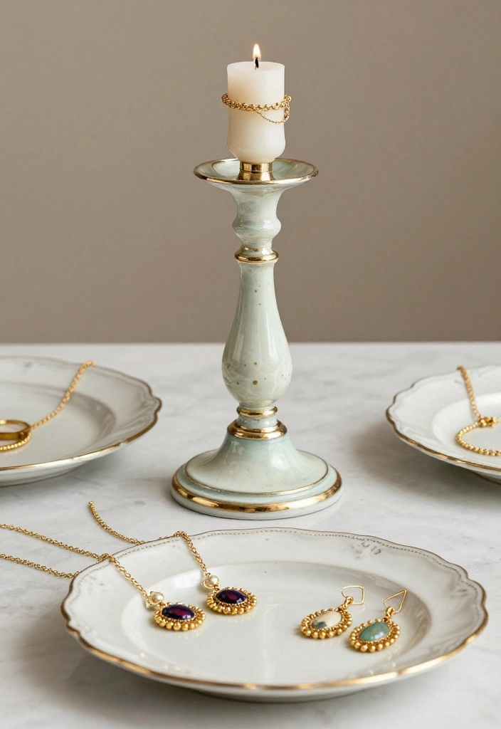 Your vintage candlestick holder display will not only organize your jewelry but also serve as a charming decorative element in your home!