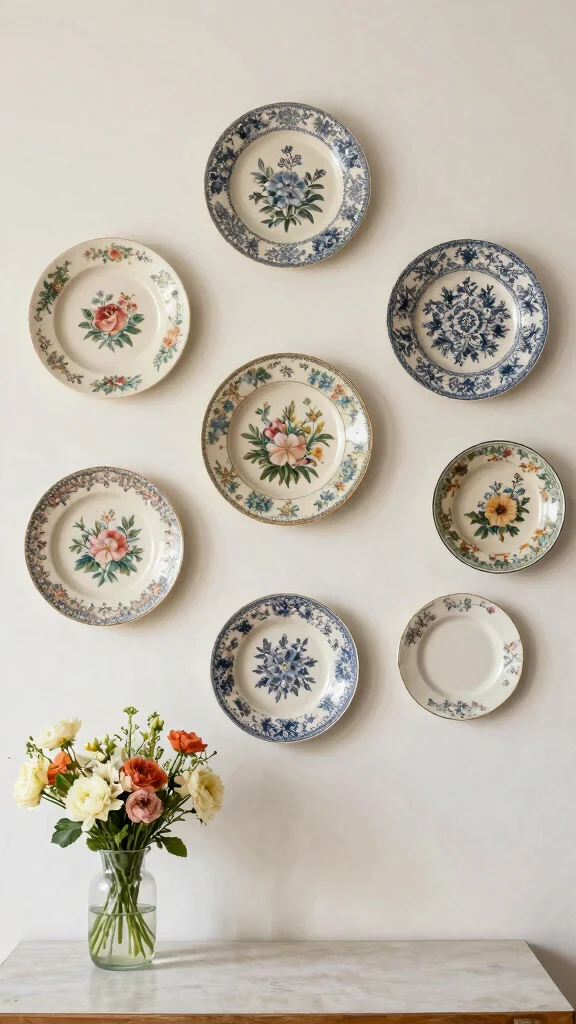 Create a stunning vintage plate wall that showcases beautiful dishware. This decor idea allows you to repurpose old plates into an eye-catching display that tells a story. Arrange the plates in various sizes and patterns for a charming and eclectic look.