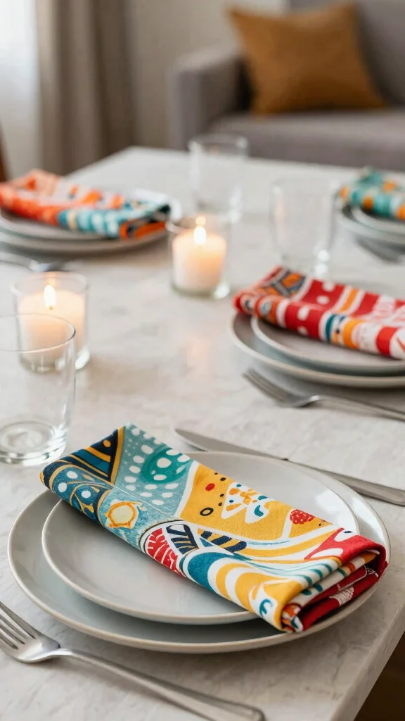 Make the switch from disposable to reusable fabric napkins, adding both style and sustainability to your dining experience. Choose cotton or linen fabrics in patterns that complement your living room decor. Cut them into squares or rectangles and hem the edges for a polished finish.