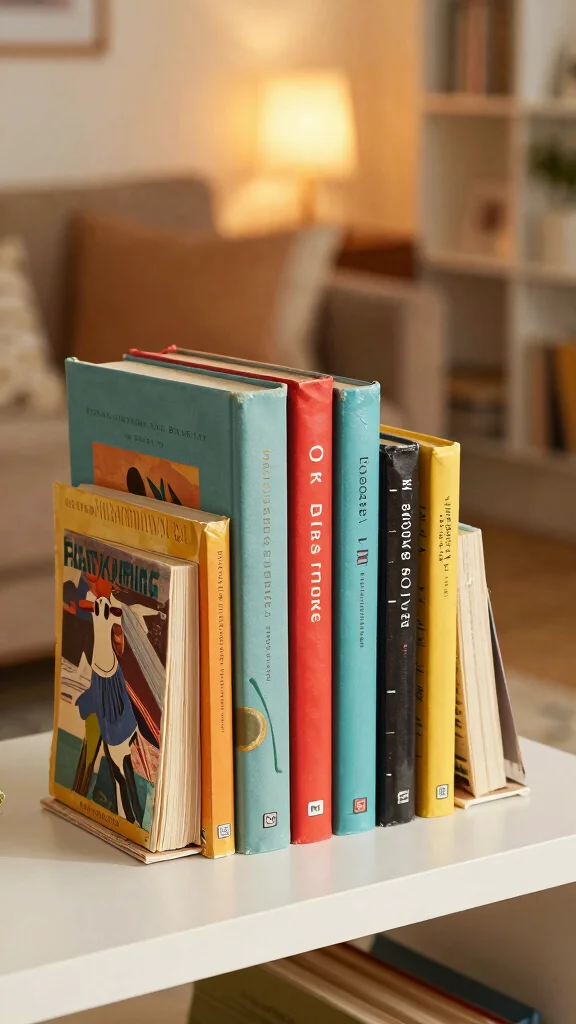 Turn old books into stylish decorative bookends that add character to your living room. Select a couple of hardback books you no longer read, and securely glue them together. Once dry, you can paint them or leave them as is for a vintage aesthetic.