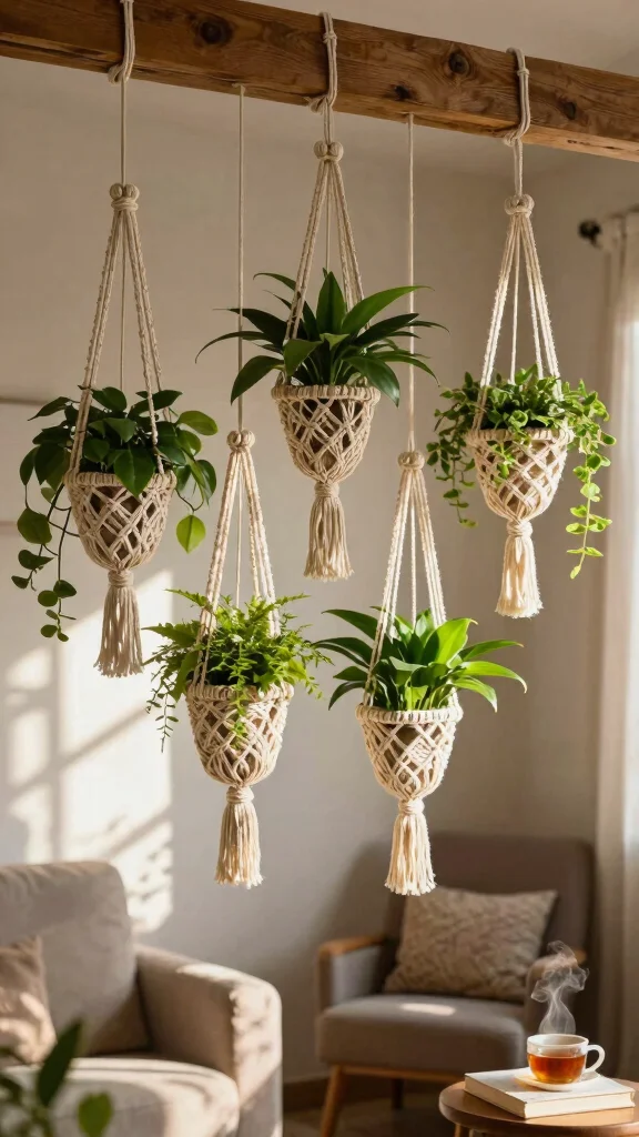 These plant hangers not only elevate your decor but also introduce natural textures, making your living area feel warm and inviting.