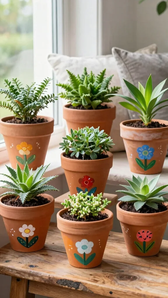 Hand-painted terracotta pots are a delightful way to add personality to your indoor garden. Start with plain terracotta pots and eco-friendly paints to create designs that reflect your style. From intricate floral patterns to simple color blocks, the possibilities are endless. This project is perfect for all ages, combining art with nature beautifully.