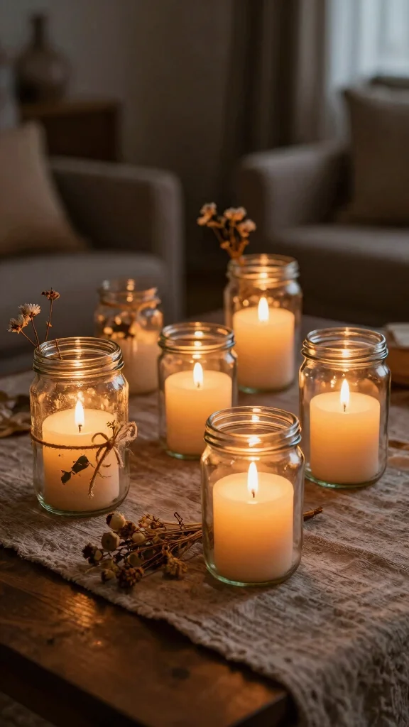 To add a personalized touch, consider decorating the jars with twine, lace, or dried flowers. This project is not only eco-friendly but also enhances the cozy ambiance of your space.